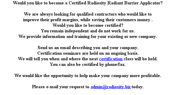 Contractors can order our most popular brochure. These brochures are high quality and in full color. With a place to staple YOUR business card! These Brochures are a must for Trade-Shows and are invaluable for prospective clients! The Consumer Brochure has been developed to help you, the contractor, educate customers that may be interested in having a radiant barrier installed in their home! Available in packs of 100. Consumer Brochure (English) HS05.06 $25.00 per pack (Free shipping in USA) email us for shipping and payment details |