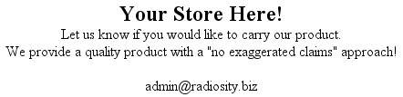 Online at Amazon.com Radiosity products can be purchased at "Make It Appear!" Click on the logo to find their listing. |